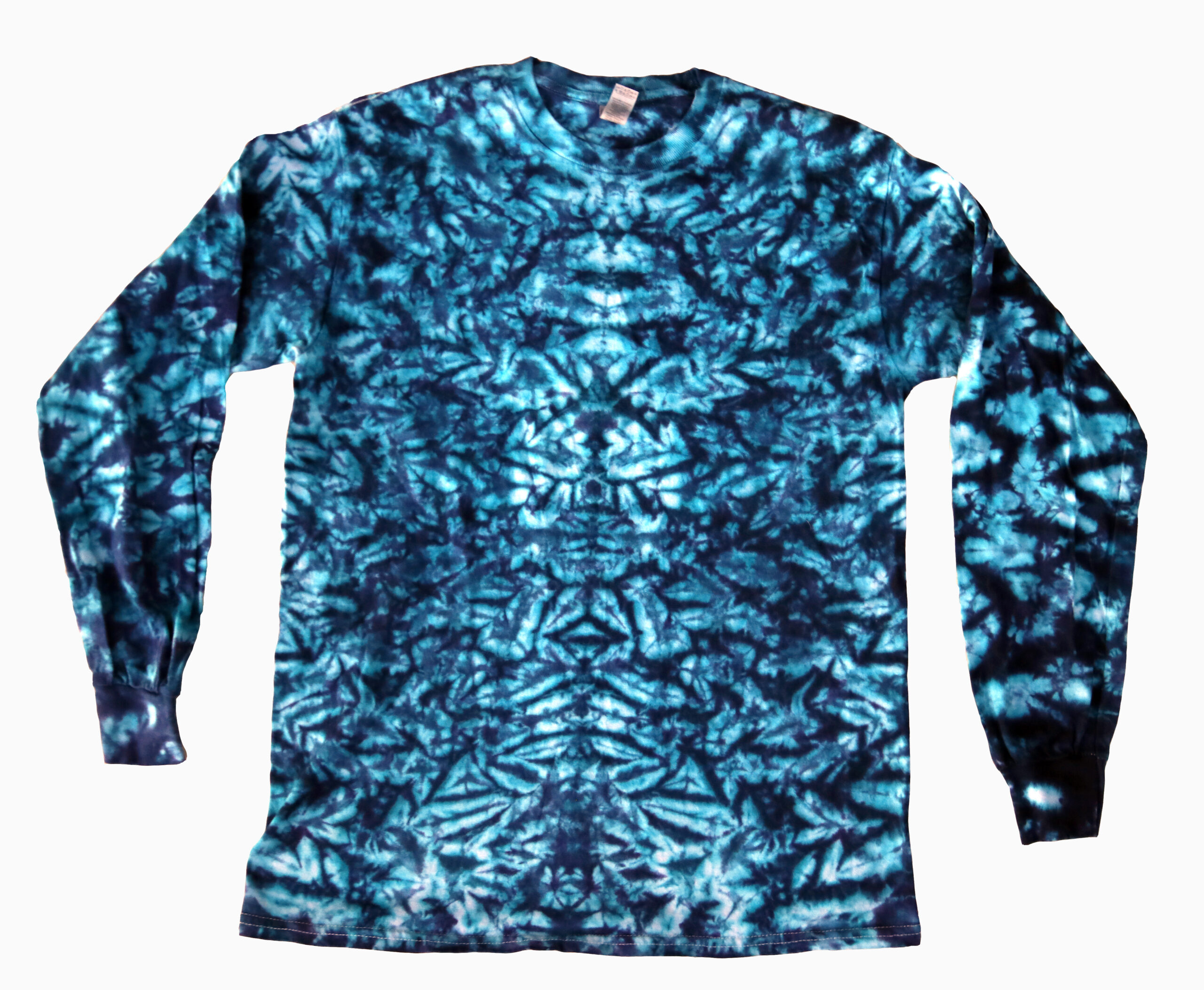 “Blue Marble Faces” style long sleeve tie dye shirt. Click on image to zoom.
